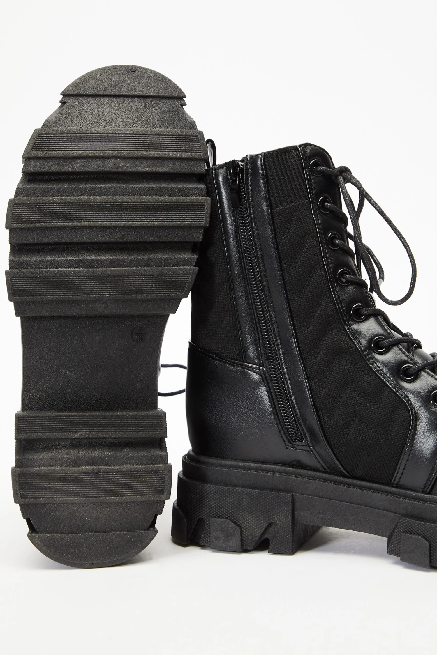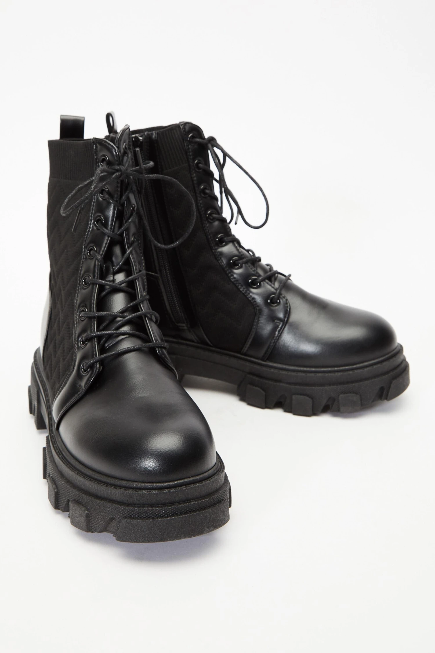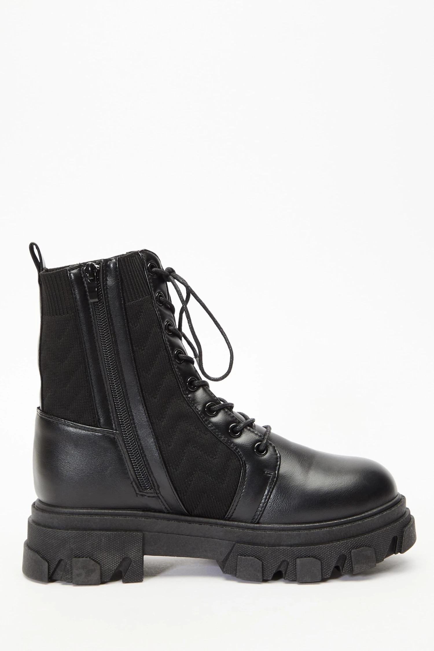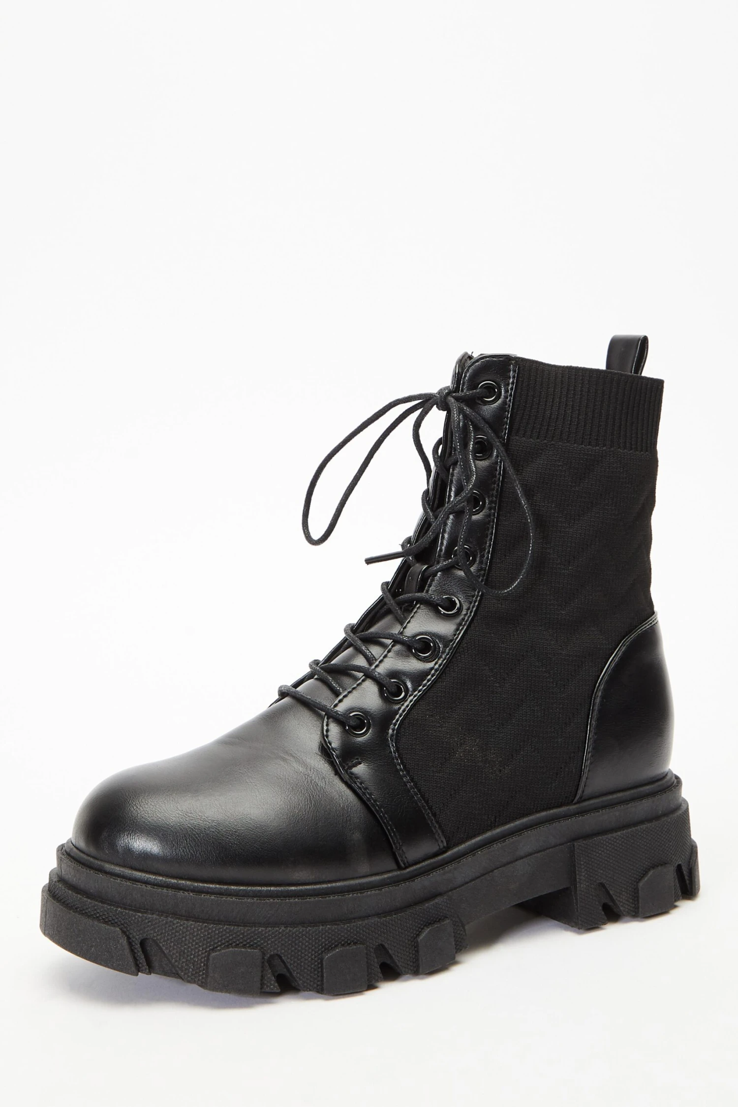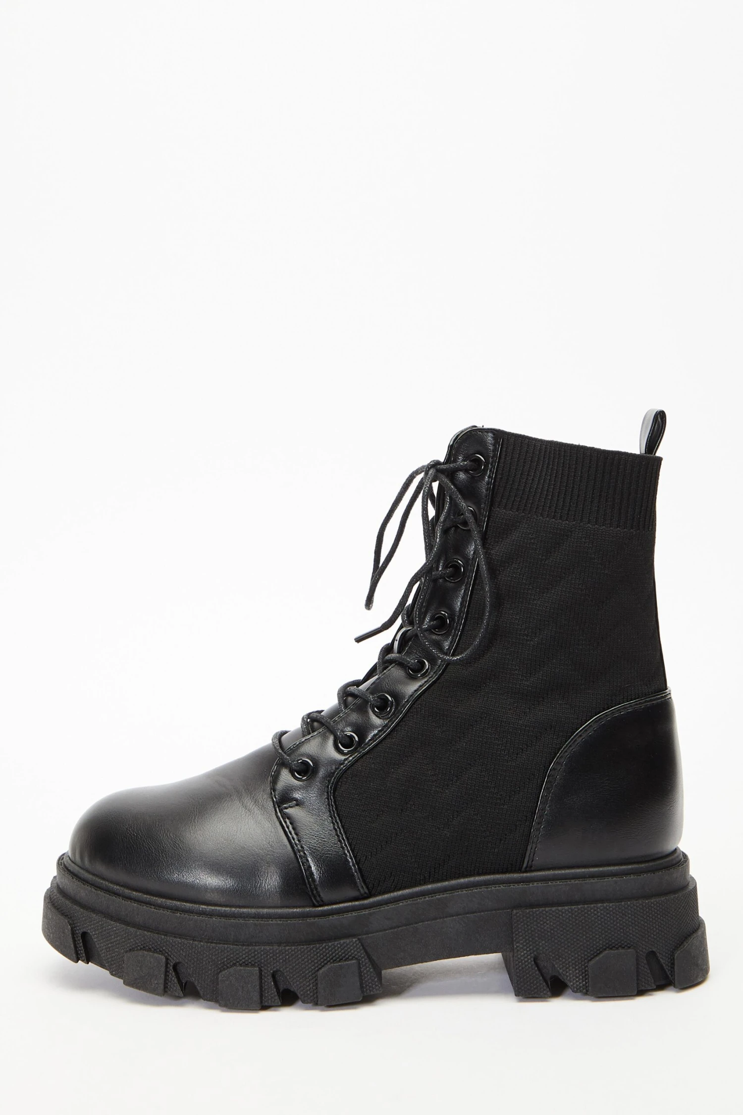 Black Lace Up Knitted Boots