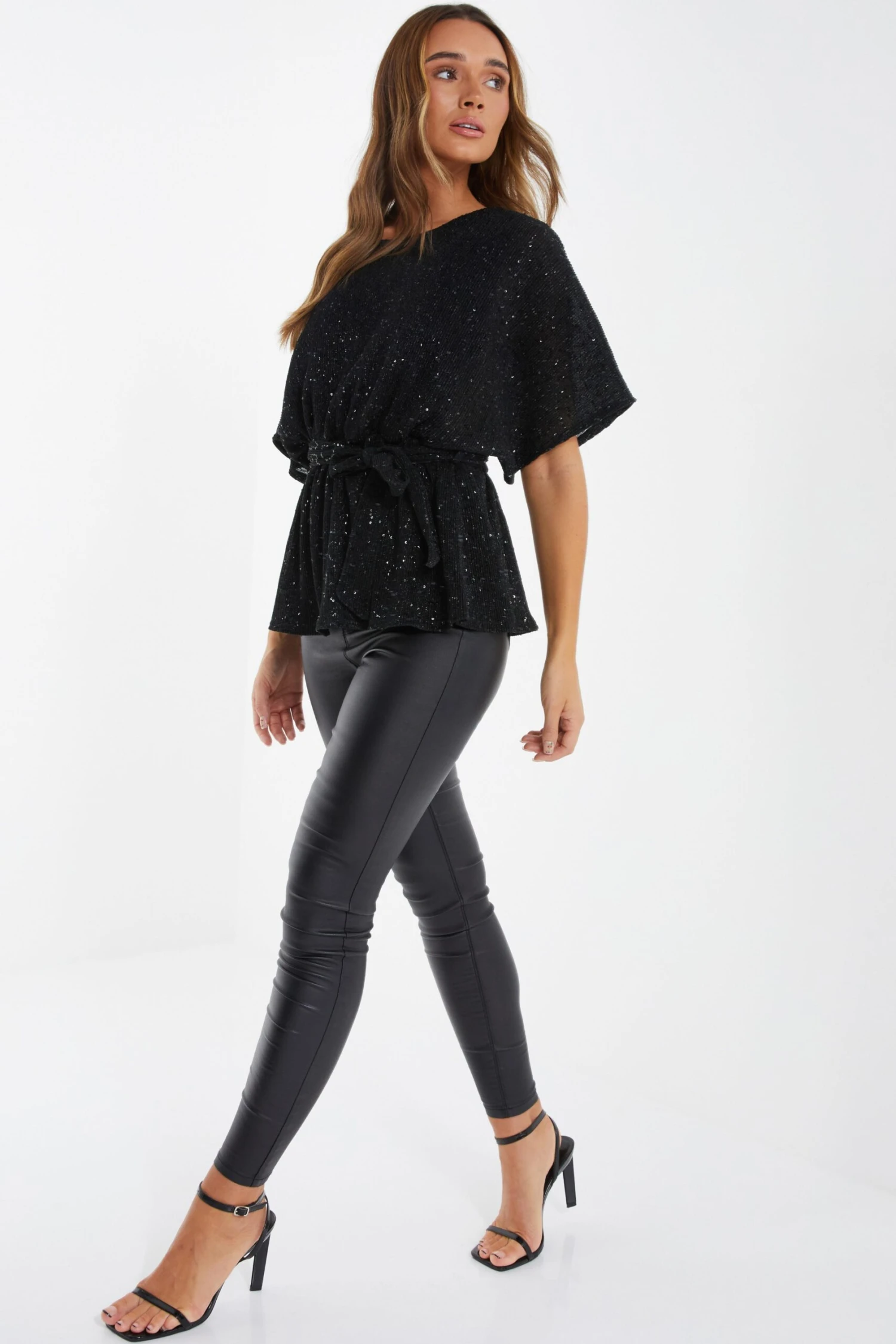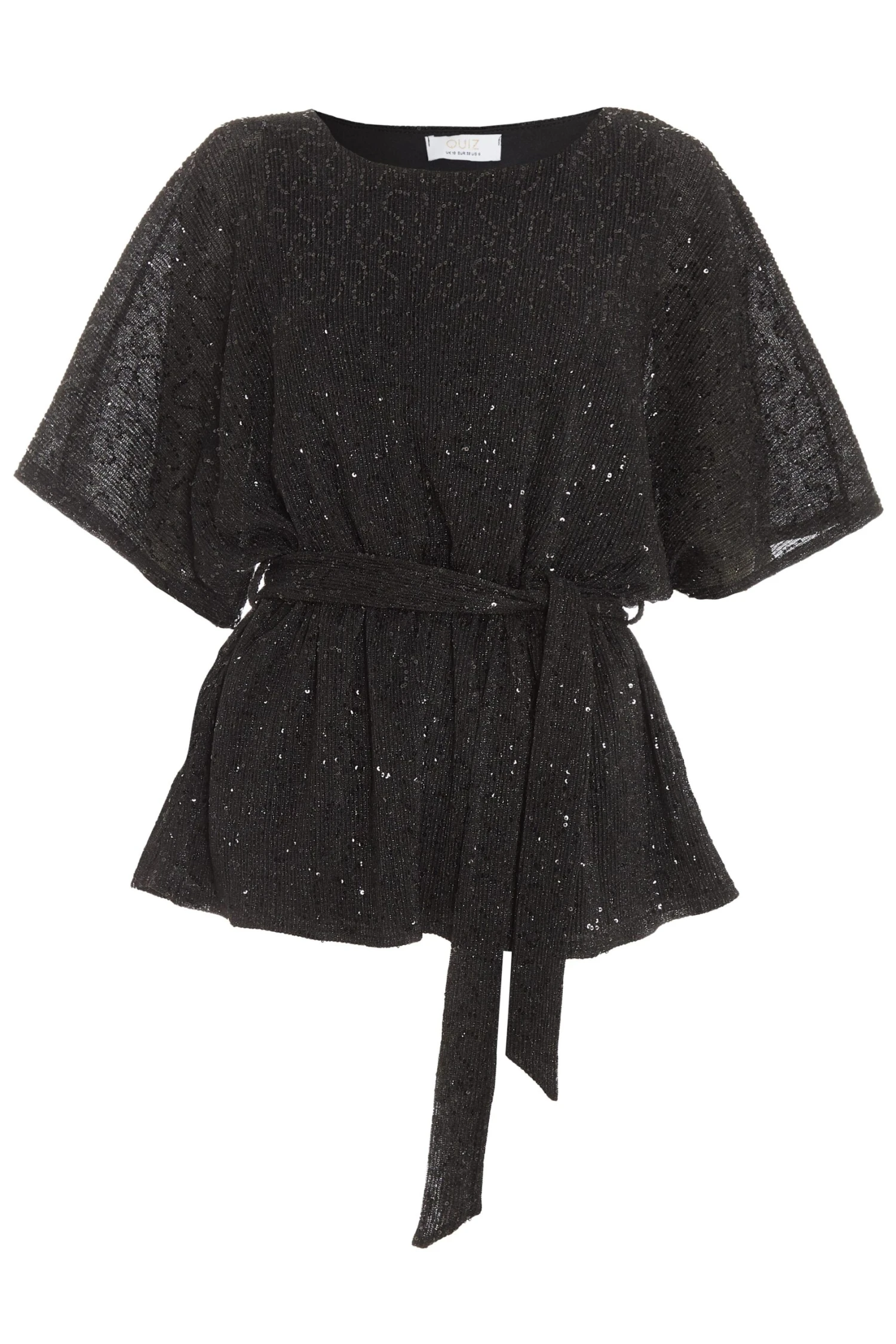 Black Sequin Batwing Peplum Top