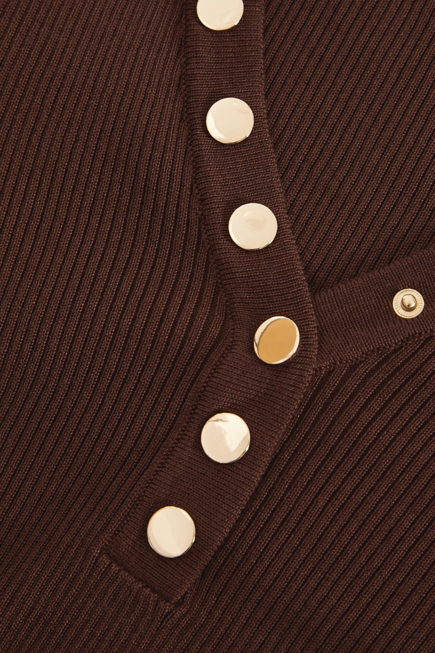 Brown Ribbed Button Long Sleeved Bodysuit
