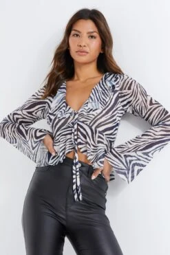Stone Zebra Print Mesh Top