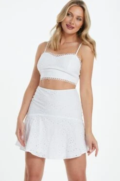 White Broderie Crop Top