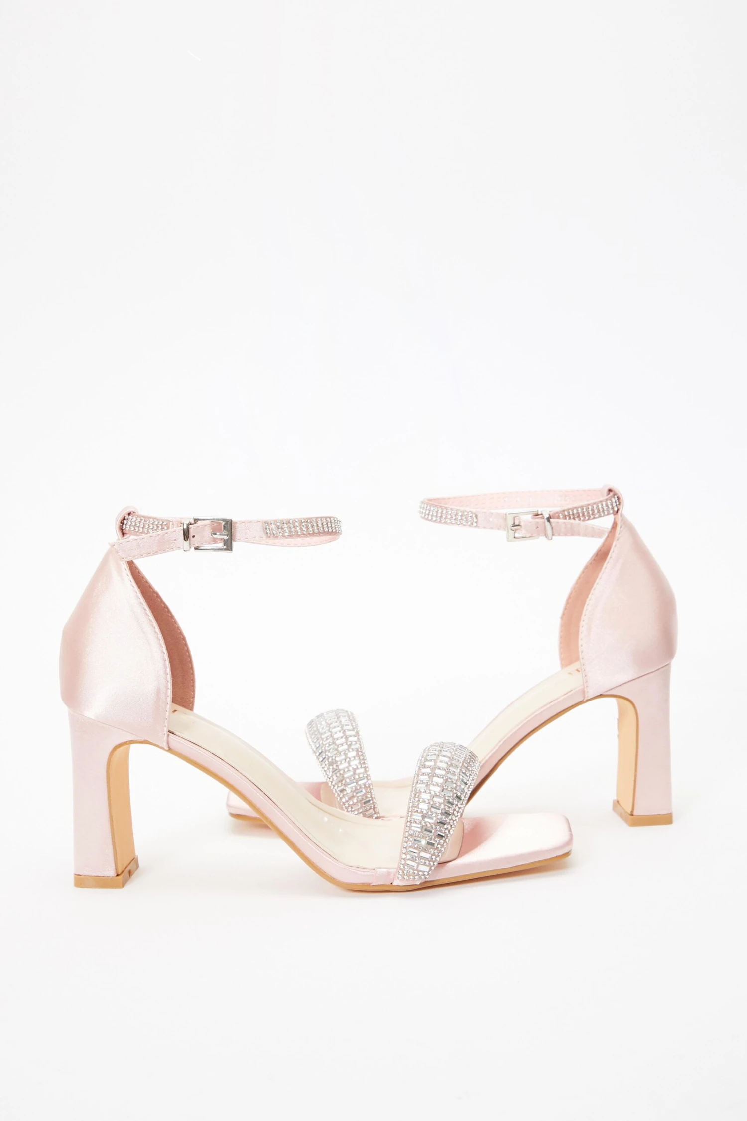 Pink Satin Diamante Heeled Sandals