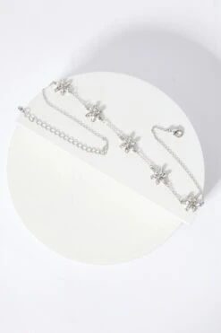 Silver Diamante Flower Choker Necklace