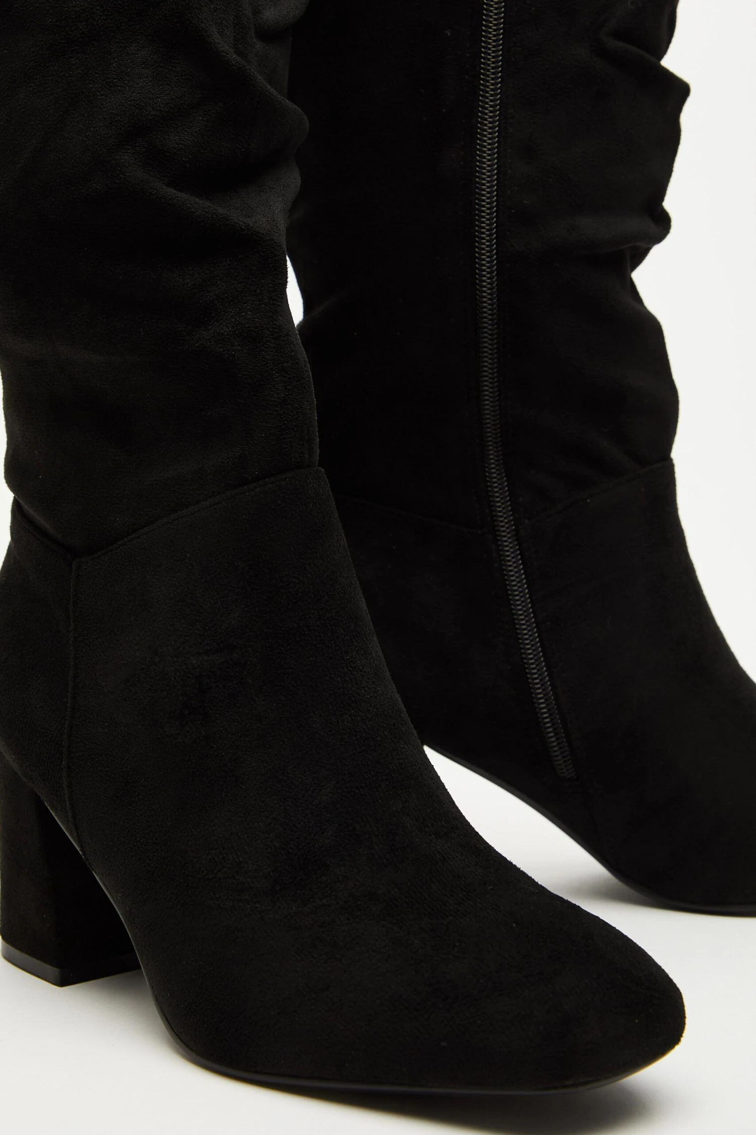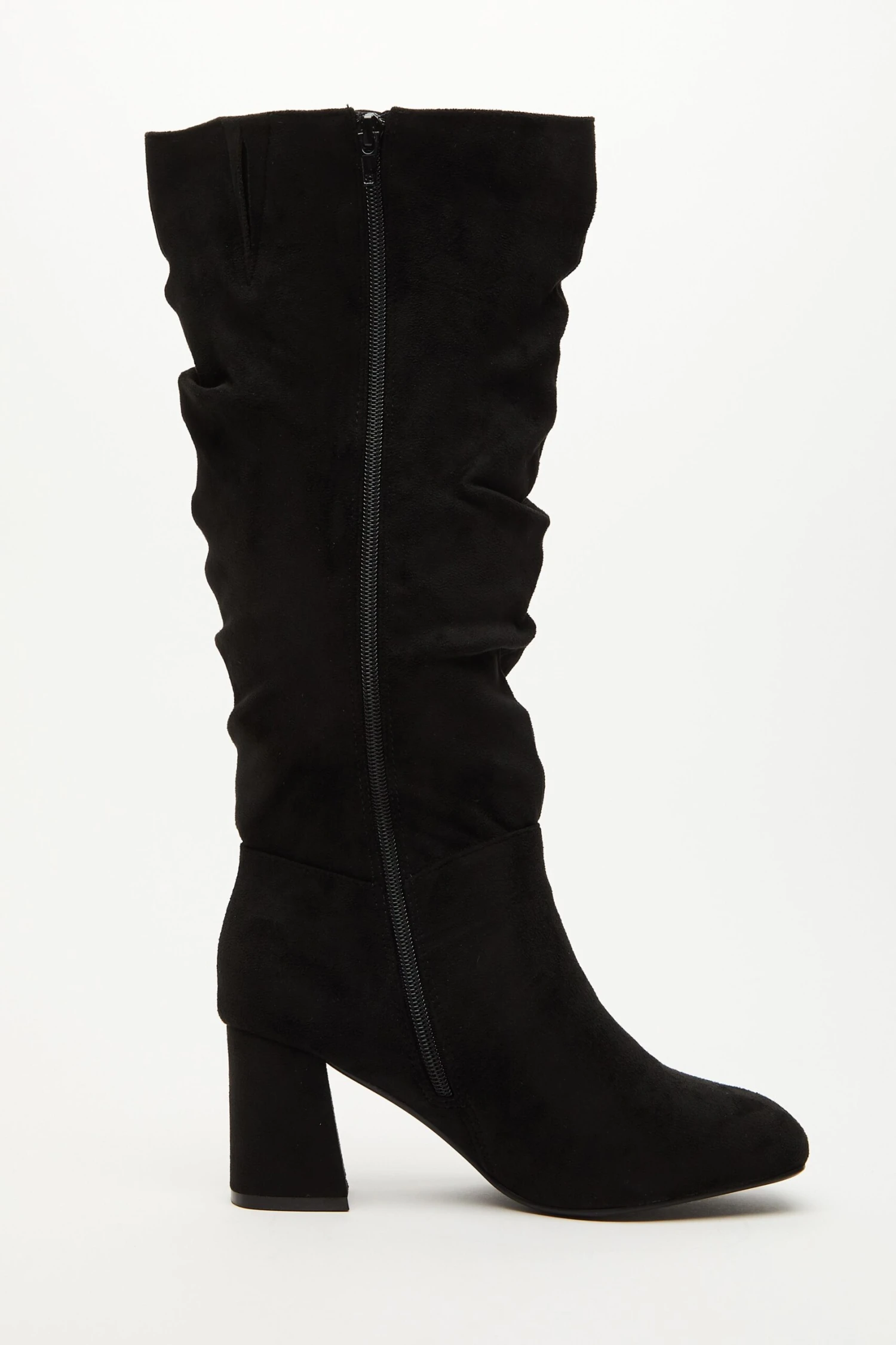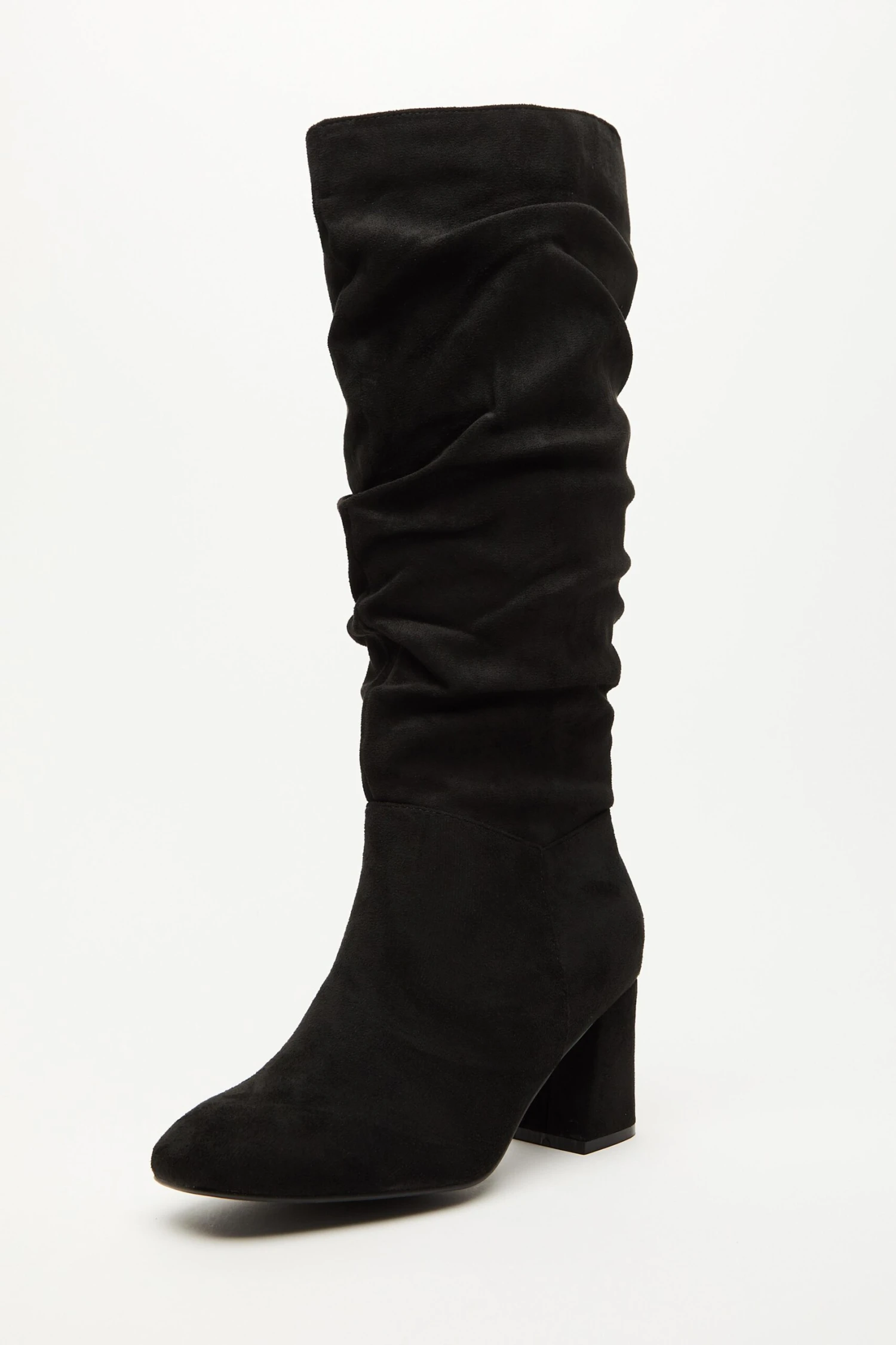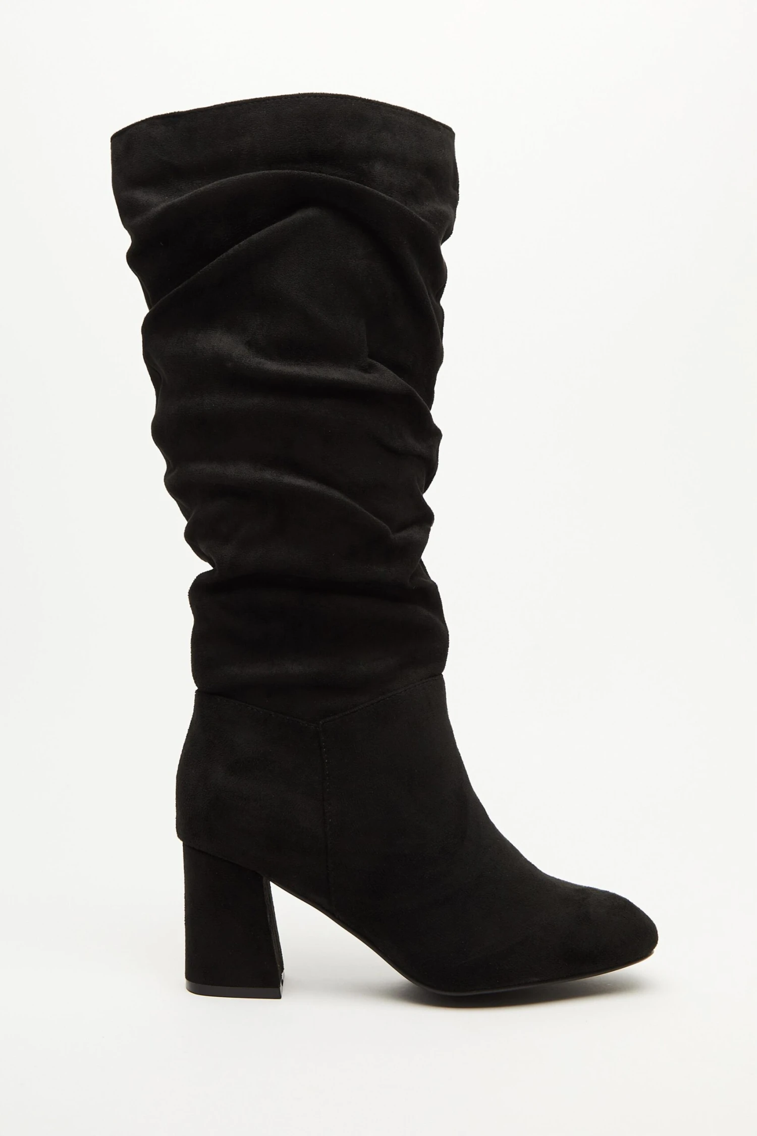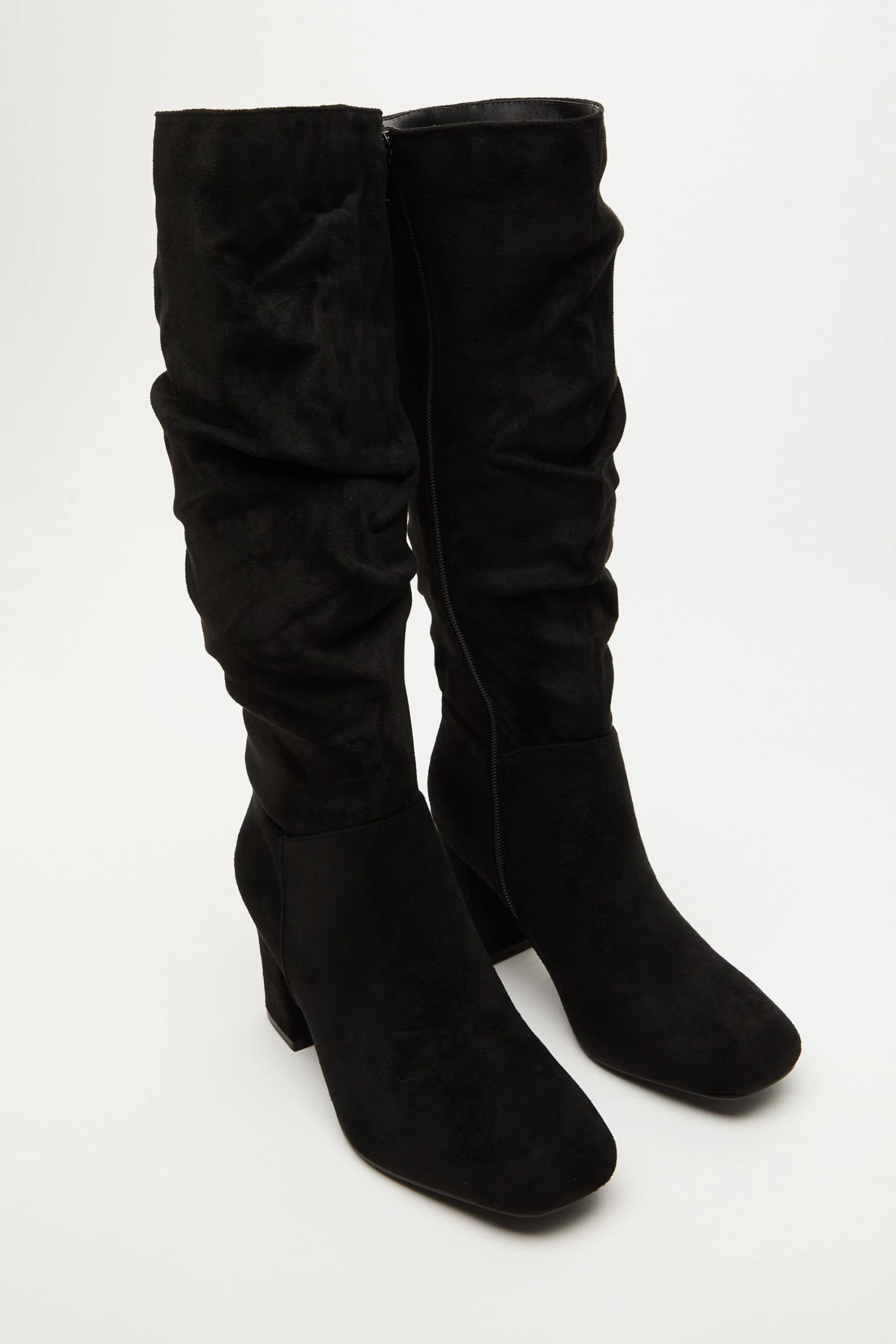 Wide Fit Black Faux Suede Ruched Heeled Boots